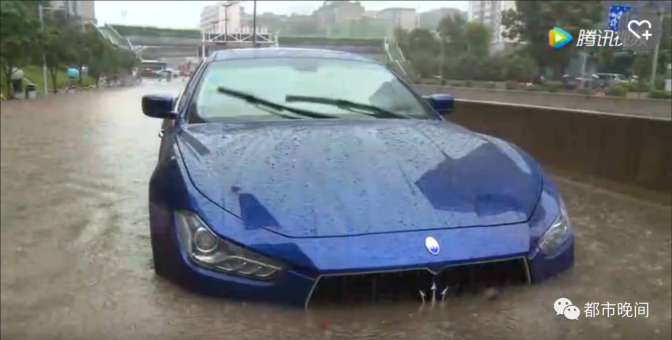 同樣是在南湖路隧道口附近,積水影響到了周邊一些小區(qū)居民的出行。由于對水位判斷不準確,一位駕駛瑪莎拉蒂的車主通過南湖路的時候,車輛熄火被困在水中。