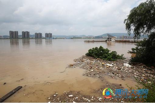 長沙猴子石大橋附近,漲水的湘江上隨處可見漂浮物。