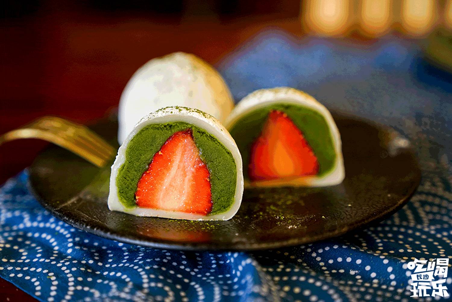 Q彈的糯米皮里裹覆著抹茶味的豆沙餡,一整只奶油草莓“躺”中間,配上細(xì)膩的抹茶粉,一口咬下去,這種滿足感難以形容!