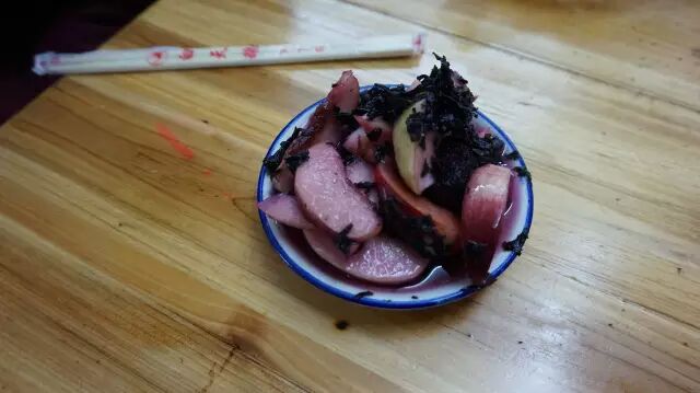 這樣一小碟10元,有紫蘇、桃子、生姜、楊梅。開胃涼菜還是很棒的,可打包帶走,比較方便噠。夏天吃應(yīng)該更有味道,因?yàn)楸?zhèn)出來的消暑~大家除了吃這份開胃(甜品?)之外,還有很多涼菜可以選擇噠,種類不算多,但是口感都是棒棒噠~