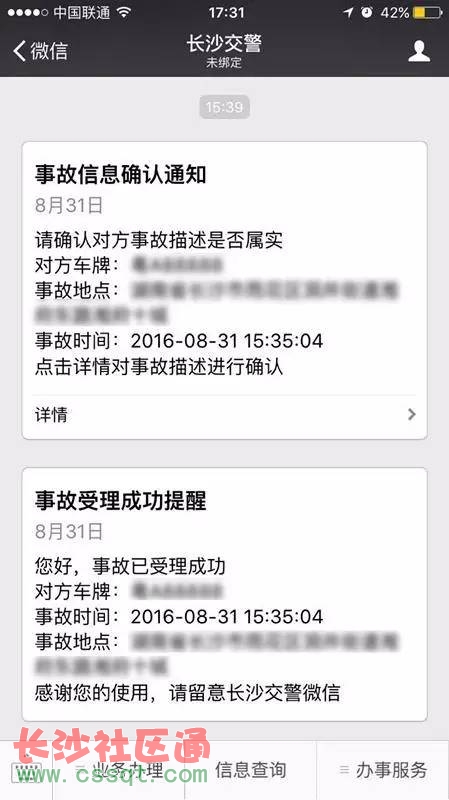 長沙交警支隊處罰教育科副科長許曉為現(xiàn)場媒體詳細(xì)介紹平臺功能騰訊·大湘網(wǎng)專業(yè)技術(shù)人員為各位媒體人員講解平臺操作流程9月1日,長沙公安交警微信平臺交通事故遠(yuǎn)程定責(zé)正式上線試運行。交通事故遠(yuǎn)程定責(zé)平臺是長沙公安交警、騰訊大湘網(wǎng)及湖南省保險行業(yè)協(xié)會聯(lián)合開發(fā)在微信客戶端的新運用。長沙公安交警微信遠(yuǎn)程定責(zé)平臺的開發(fā)是長沙公安交警順應(yīng)“互聯(lián)網(wǎng)+”時代的又一創(chuàng)新;同時也是本著“讓數(shù)據(jù)多跑路,讓群眾少跑腿”便民利民的工作宗旨。該平臺投入后,將改變過去適應(yīng)“快處快賠”交通事故業(yè)務(wù)辦理的當(dāng)事人,“不知、不會、茫然”的狀態(tài)【事故當(dāng)事人發(fā)生事故后,不知如何操作,不會如何辦理,不能及時撤離事故現(xiàn)場的茫然狀態(tài)】;改變過去“互聯(lián)網(wǎng)+”平臺處理交通事故“半路通”的模式!疽酝荒芾没ヂ(lián)網(wǎng)平臺傳遞事故現(xiàn)場圖片,當(dāng)事人仍然要交換證件,前往交警設(shè)立的快處快賠點辦理相關(guān)業(yè)務(wù)】,F(xiàn)在完全不用了,輕微事故發(fā)生后,當(dāng)事人拍照后,立即將車輛移至不防礙交通通行的路段,然后雙方上傳相關(guān)信息資料,即可以快速進(jìn)行責(zé)任認(rèn)定。從而減少因小事故給城區(qū)道路通行帶來交通擁堵的大麻煩。今后,凡發(fā)生在長沙城區(qū)范圍內(nèi),適用于快處快賠的兩車之間的輕微事故,事故雙方當(dāng)事人可通過微信上傳相關(guān)信息,民警在線通過微信平臺與當(dāng)事人互動(進(jìn)行相關(guān)信息確認(rèn)),快速通過微信平臺進(jìn)行判定事故雙方責(zé)任,并通過微信平臺迅速下達(dá)電子版的《交通事故責(zé)任認(rèn)定書》。同時,遠(yuǎn)程定責(zé)平臺會給當(dāng)事人推送就近的保險公司定損受理點。雙方當(dāng)事人無需再駕車到快處快賠點進(jìn)行責(zé)任認(rèn)定?蓱{電子版《交通事故責(zé)任認(rèn)定書》可到保險公司任一簽約理賠點進(jìn)行定損、理賠。目前,保險公司定損點共有186個(含10個快處快賠點、不含望城,瀏陽,寧鄉(xiāng))。交通事故當(dāng)事人先關(guān)注“長沙交警”(csjjwx)微信公眾號;通過公眾號的遠(yuǎn)程定責(zé)模塊,提交事故圖片、車輛、駕駛?cè)、事故發(fā)生地和事故基本情況等相關(guān)信息;(注:雙方當(dāng)事人均要進(jìn)行提交);當(dāng)事雙方,進(jìn)行信息確認(rèn);信息推送受理號;(方便當(dāng)事人事后查詢);民警根據(jù)當(dāng)事人提供的信息,結(jié)合事故圖片判定責(zé)任,隨即向當(dāng)事人發(fā)送電子版交通事故責(zé)任認(rèn)定書;并推送就近的保險公司定損受理點;當(dāng)事人收到事故責(zé)任認(rèn)定書后,事故雙方可到保險公司任意一簽約理賠點進(jìn)行定損、理賠。