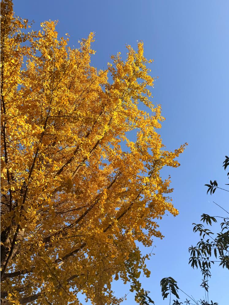 明媚金黃的銀杏葉掛在枝間