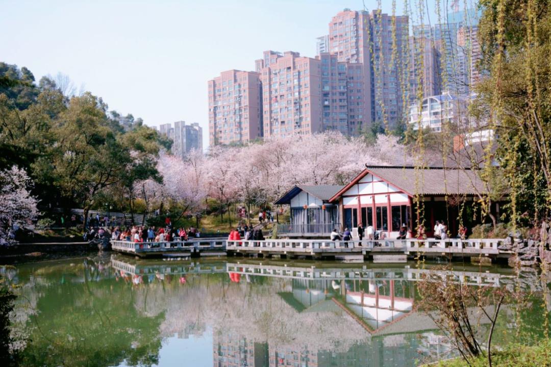 主打本土山櫻花,搭配吉野櫻、寒緋櫻,分布在銅盆湖湖畔、玉璧廣場、漢樂區(qū),粉白花朵綴滿枝頭,風一吹便有“櫻花雨”飄落,氛圍感拉滿。花期從3月上旬持續(xù)至3月底,單株山櫻花花期約15天,眼下正是最佳觀賞期。