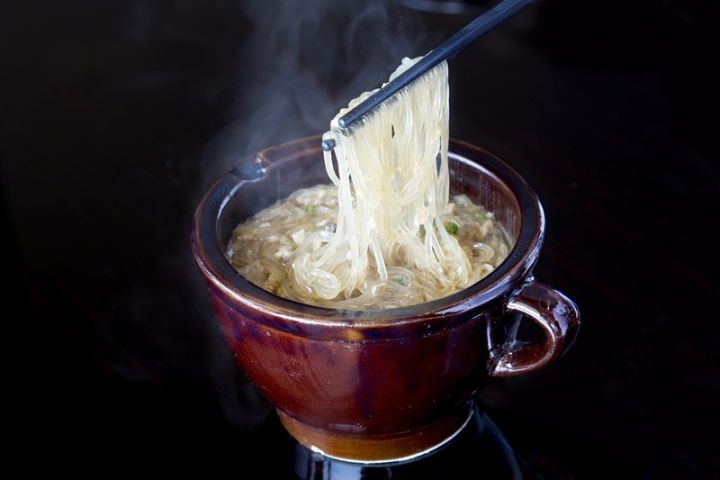 用湘陰本地手工生產(chǎn)的紅薯粉,粵菜的高湯加上湖南的油渣子,巧妙融合帶來(lái)奇妙口味。湘廚炫技,重新賦予了質(zhì)樸食材新的生命力,入口爽滑,唇齒留香。