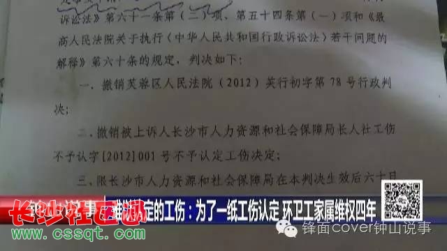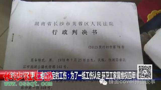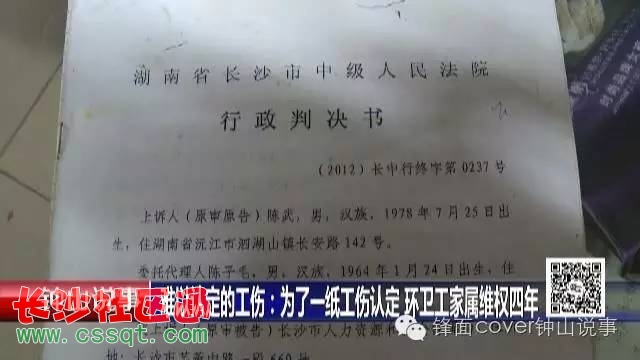 陳子毛說(shuō),哥哥去世后,首先由長(zhǎng)沙市芙蓉區(qū)人民法院裁定:不予認(rèn)定陳子桂的工傷決定。隨后,陳子毛立即向長(zhǎng)沙市中級(jí)人民法院上訴,在2012年11月29,長(zhǎng)沙市中級(jí)人民法院裁決:撤銷被上述人長(zhǎng)沙市人力資源和社會(huì)保障局的不予認(rèn)定工傷決定。并要求長(zhǎng)沙市人力資源社會(huì)保障局在本判決60日內(nèi)依法對(duì)陳子桂重新作出工傷認(rèn)定決定。但事情并沒(méi)有陳子毛想象的那么順利。