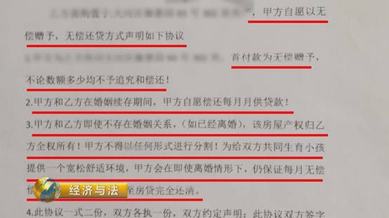 這個(gè)時(shí)候,小李又拿出一張自己起草的《自愿贈(zèng)予房屋首付及相關(guān)還貸協(xié)議書》讓于先生簽署。這份協(xié)議寫到,買房子的首付款為于先生無(wú)償贈(zèng)予,同時(shí)于先生還要為房子還貸款,即使離婚也要一直還貸。