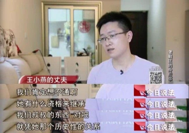 趙老太太的兒子說,死者王崇喜是自己的“舅舅”,他說1960年的時(shí)候王崇喜的父母因?yàn)轲嚮陌淹醭缦菜徒o了趙家當(dāng)“代子”,還改了一個(gè)名字叫“趙會(huì)勝”,現(xiàn)在老人死了,作為他姐姐的趙老太太自然有權(quán)利繼承王崇喜老人的遺產(chǎn)。對(duì)此王小燕并不意外,她說兩年前,趙家人就給她打過電話,說要兩家合伙分財(cái)產(chǎn)。王小燕說,叔叔30多年沒和趙家有過往來,從住院到后事趙家人也一直沒露面,現(xiàn)在一找過來就是為了錢,她不能答應(yīng)。