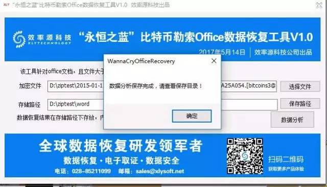 這次爆發(fā)的“永恒之藍(lán)”和它的變異品種病毒,那個(gè)超級(jí)厲害的實(shí)驗(yàn)室和效率源聯(lián)手組織技術(shù)工程師進(jìn)行研究和破解,成功分析出此病毒的加密方式,第一時(shí)間推出“永恒之藍(lán)”比特幣勒索Office數(shù)據(jù)恢復(fù)工 具V1.0。