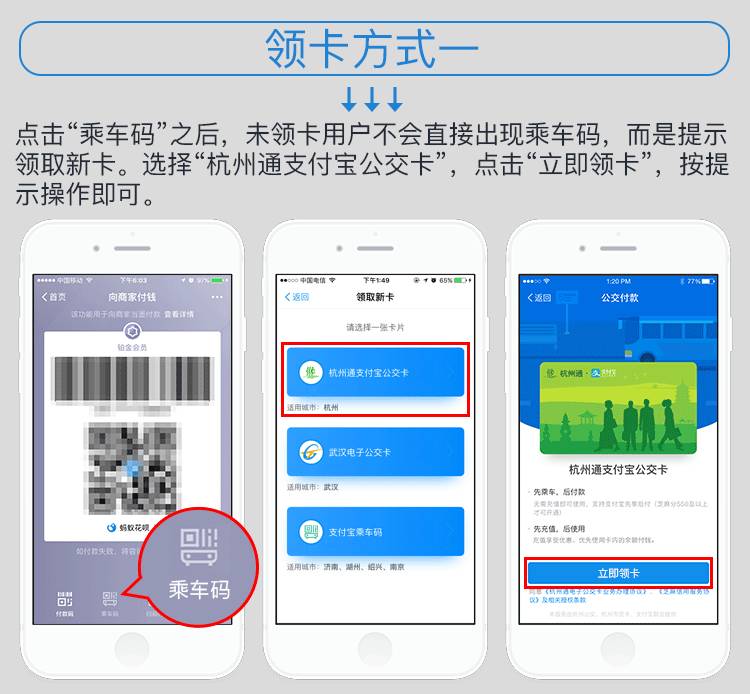 你需要先領(lǐng)取一張杭州通支付寶公交卡