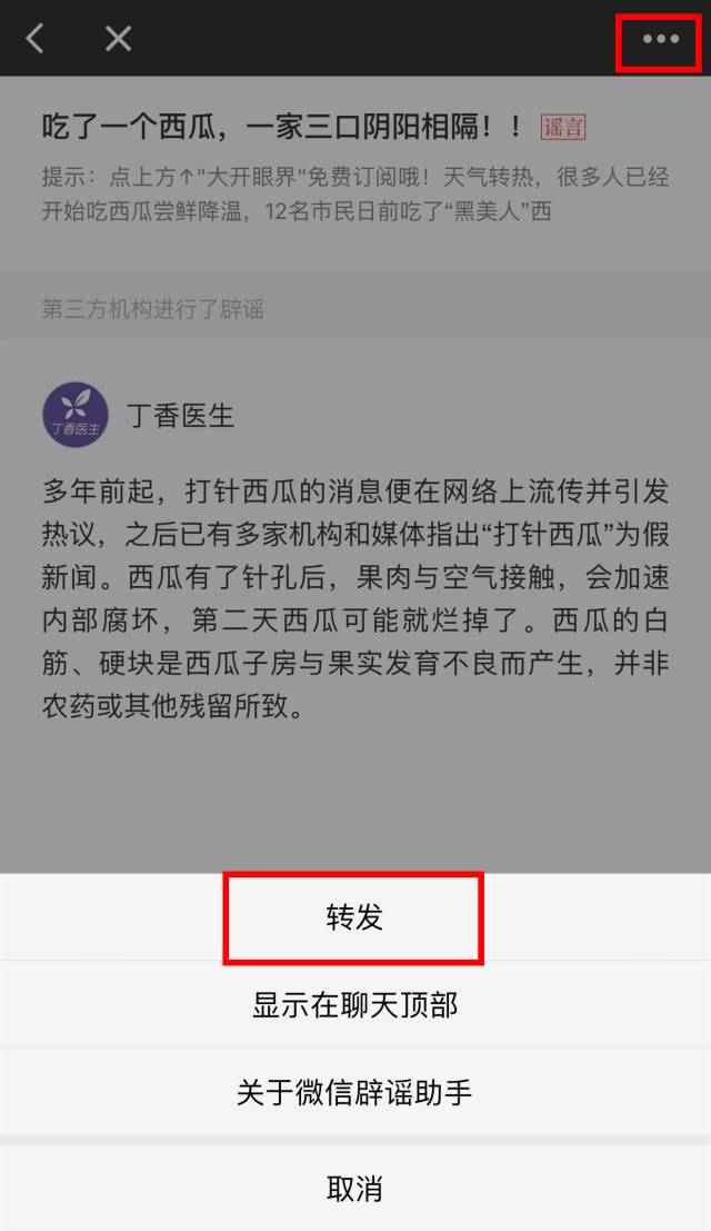 點擊文章,就能查看權威辟謠機構的說法了。