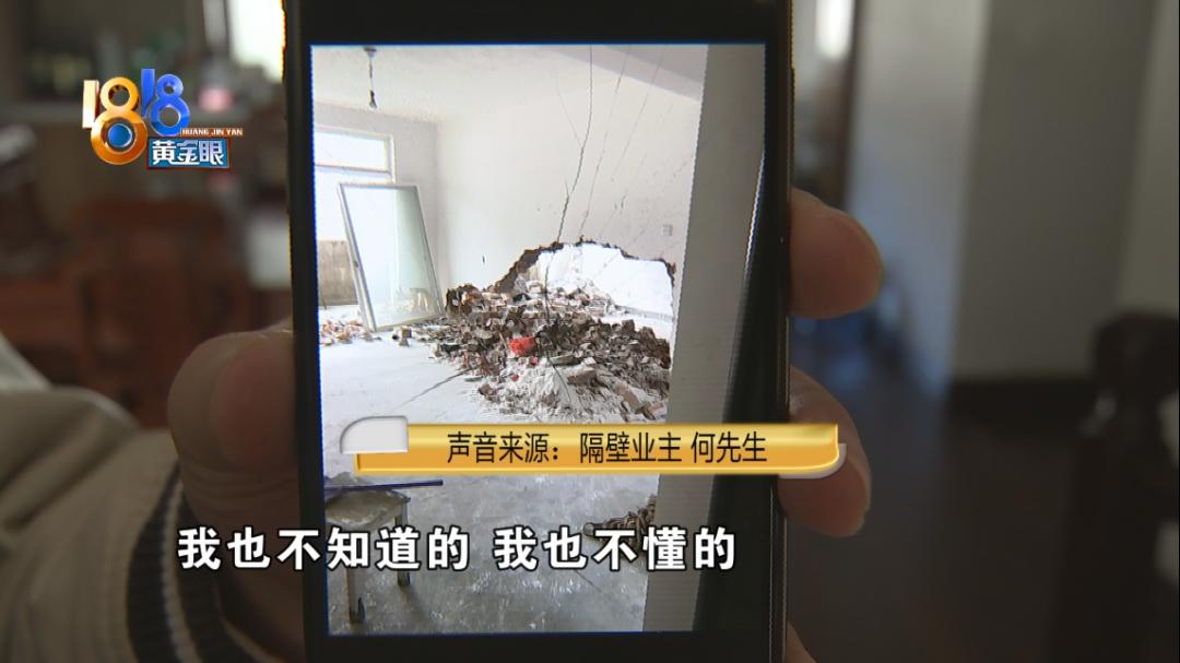 隔壁業(yè)主 何先生:“我現(xiàn)在一個在外面,主管部門執(zhí)法的,我要過來是過來的,我現(xiàn)在也沒空,到外面去了,還有一個,你們叫過來,我家到這里要15里路,我已經(jīng)錯了,開始是錯了,也不是我房東錯的,是裝修公司圖紙,我也不知道的,我也不懂的!