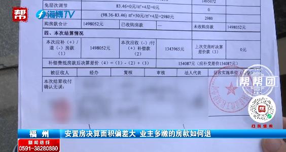 "憑空多出6平方米,要多繳11萬(wàn)4千元!"福州匯景佳園小區(qū)20余戶業(yè)主反映,安置房交房決算面積與協(xié)議面積存在較大差異。記者調(diào)查發(fā)現(xiàn),同一棟樓同戶型業(yè)主卻未遭遇此問(wèn)題,這究竟是怎么回事?