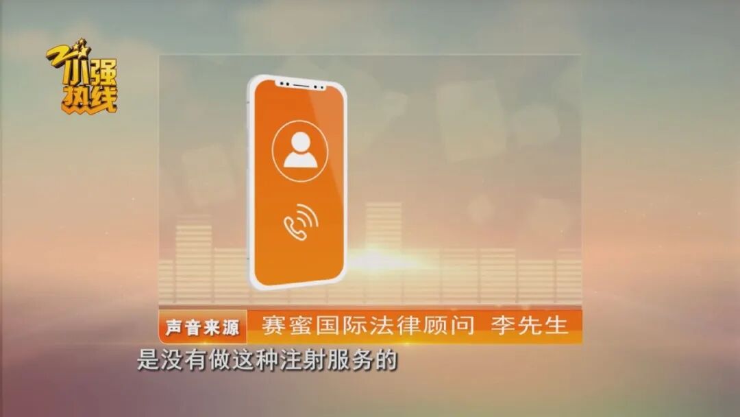 幾經(jīng)輾轉(zhuǎn),記者聯(lián)系上了這家公司的法律顧問(wèn)。律師透露,他們公司并沒(méi)有注射的經(jīng)營(yíng)內(nèi)容,“因?yàn)槲沂撬麄兊穆蓭,我是了解他們?jīng)營(yíng)范圍的,他們本身是沒(méi)有做這種注射服務(wù)的,看營(yíng)業(yè)執(zhí)照,他們本身就是賣一些產(chǎn)品的,沒(méi)有注射服務(wù)。”