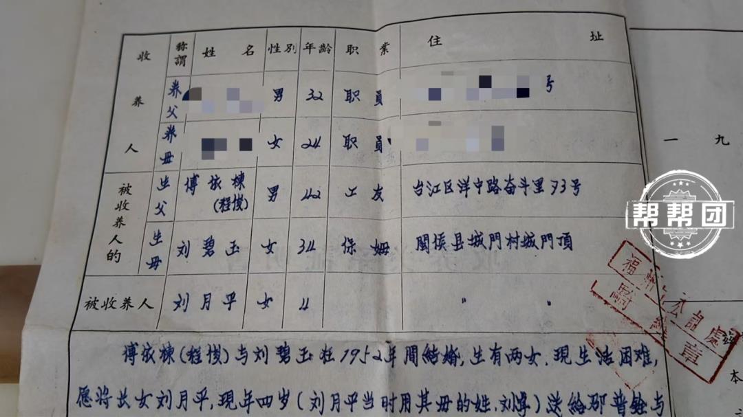 近日,福州閩侯73歲的邵奶奶向《幫幫團(tuán)》求助,稱五年前她在整理母親的遺物時(shí),意外發(fā)現(xiàn)自己的《領(lǐng)養(yǎng)證明書(shū)》,才知自己原名劉月平,4歲時(shí)因原生家庭困難被送養(yǎng)。 如今年紀(jì)漸長(zhǎng),邵奶奶心中對(duì)親情的牽掛愈發(fā)深切,尤其希望能找到自己的親妹妹(根據(jù)年齡推算,父母或已不在)。根據(jù)證明書(shū)上留下的生父傅依棟(程俊)地址——洋中路奮斗里73號(hào),記者陪同邵奶奶的兒子前往尋訪。 然而因年代久遠(yuǎn),原址已幾經(jīng)征遷,變?yōu)楝F(xiàn)代小區(qū)與店面,老鄰居稱這里多年前曾是一家工廠。街道辦也表示,該地段在近七十年間經(jīng)歷兩次征遷,僅憑舊姓名與地址難以追蹤。 在洋中派出所戶籍民警熱心的協(xié)助下,根據(jù)年齡推算檢索了“傅依棟(程俊)”及“劉碧玉”等信息,可惜未能找到匹配的在世人員,唯一信息相近的“劉碧玉”也已過(guò)世,且無(wú)子女信息記錄,線索暫時(shí)中斷。 雖尋親之路暫時(shí)陷入困境,但邵奶奶依然期盼能與親人重逢。如果您有關(guān)于“傅依棟(程俊)”或“劉碧玉”一家,或知悉相關(guān)往事,可以聯(lián)系《幫幫團(tuán)》,幫助邵奶奶延續(xù)這份跨越數(shù)十年的親情。