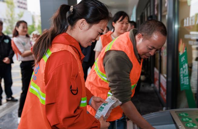“您看,用微波爐加熱剩飯時(shí),把飯盒蓋留條縫,熱出來(lái)的飯更松軟,還能避免濺油!被顒(dòng)現(xiàn)場(chǎng)的“技能賦能微課堂”專(zhuān)區(qū),志愿者小張正耐心向環(huán)衛(wèi)工人王阿姨演示“簡(jiǎn)易熱飯技巧”,并遞上印著“糧食節(jié)約+健康飲食”知識(shí)的主題卡片,卡片背面的湖南省志愿服務(wù)信息平臺(tái)二維碼,還幫助王阿姨找到了附近的志愿活動(dòng)報(bào)名入口。