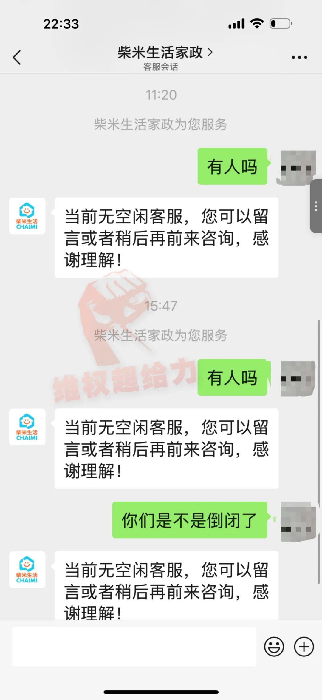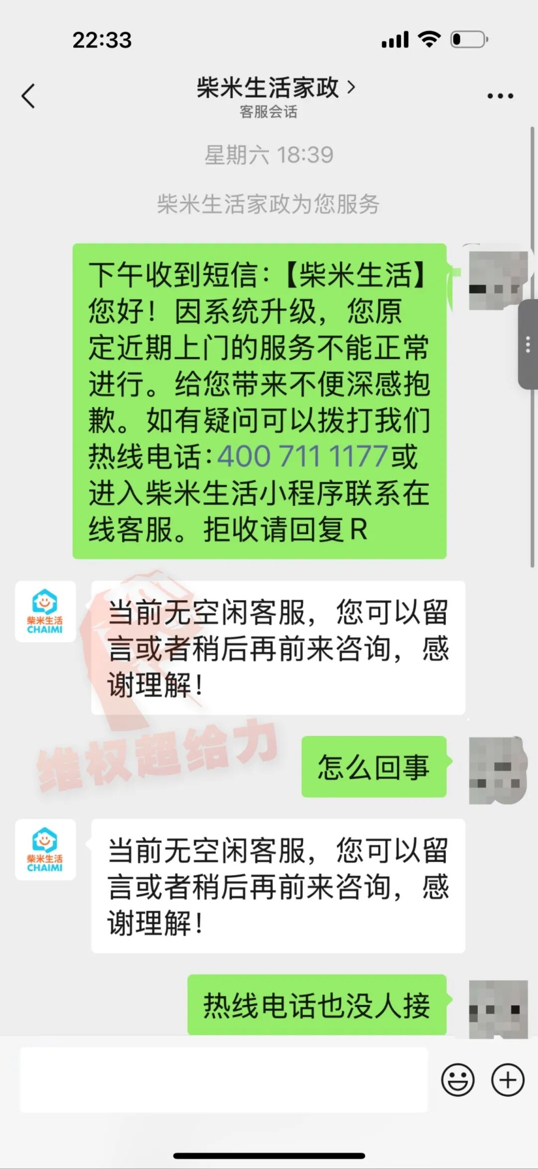 福州的陳女士向《維權(quán)超給力》報料,她通過微信小程序“柴米家政生活”購買了399元四次的日常保潔服務(wù),一次都還沒使用,該平臺就已無法正常服務(wù),而遭遇類似情況的消費者不止她一個。 今年6月份,陳女士被 “柴米家政生活” 四次日常保潔只需 399 元的新客戶優(yōu)惠活動吸引。因家中長期需要家政服務(wù),她覺得十分劃算便下單購買。 陳女士說,由于她家里平時有固定的家政阿姨,所以當(dāng)下并沒有急于使用該服務(wù),直到9月底才嘗試預(yù)約10月13日的上門服務(wù)。然而,就在預(yù)約的上門時間前兩天,她收到短信稱系統(tǒng)升級無法派阿姨。 “短信里叫我自己打熱線或者聯(lián)系小程序客服。結(jié)果我打熱線沒人接,小程序里只有收到機器人的回復(fù),也沒有人工客服! (陳女士收到無法服務(wù)的短信) 幾天后,陳女士再次登錄小程序,發(fā)現(xiàn)到明年4月都無法預(yù)約,平臺首頁發(fā)布公告稱“平臺受惡意攻擊,導(dǎo)致用戶投訴和交易糾紛”,不僅如此,她通過網(wǎng)絡(luò)搜索發(fā)現(xiàn),全國多地有多名用戶投訴此事,她擔(dān)心柴米家政生活平臺可能已經(jīng)“爆雷”。 “現(xiàn)在完全無法預(yù)約,到2026年4月都顯示‘已約滿’,整個小程序像空殼一樣,功能都失效了。微信小程序上出現(xiàn)這種情況沒人監(jiān)管! (小程序顯示2026年4月都是約滿狀態(tài)) 接到報料后,987《維權(quán)超給力》記者婷婷嘗試登錄“柴米家政生活”小程序,發(fā)現(xiàn)頁面顯示:“該小程序違反平臺運營規(guī)則,暫時無法訪問。” 10月16日下午,《維權(quán)超給力》記者撥打柴米家政的客服電話,其表示目前只能通過電話預(yù)約,但需排到11月。小程序正在升級,暫時無法操作。隨后記者再次撥打電話,就一直無人接聽。 記者注意到“柴米life家政”公眾號近期發(fā)布多條公告,大致內(nèi)容為因公司平臺近期遭遇惡意攻擊及不實輿論影響,導(dǎo)致系統(tǒng)后臺出現(xiàn)批量異常投訴及退款,已成立專職人員并調(diào)動所有客服積極處理解決,請耐心等待。 10月23日,該公眾號再次發(fā)布《關(guān)于我司近期無服務(wù)和延遲退款的聲明》稱:“我司出現(xiàn)了階段性的經(jīng)營困難,為了保障公司存續(xù)和持續(xù)經(jīng)營,我們采取了以下措施:1、關(guān)閉下單渠道,停止接收新訂單;2、暫停預(yù)約服務(wù)交付,11月開始恢復(fù)正常交付;3、對保潔員和服務(wù)商結(jié)算分批發(fā)放;4、設(shè)立專案公關(guān)小組成員,增派客服售后人員。以上措施造成了一定量的保潔員和服務(wù)商以及員工的流失,導(dǎo)致我們近期出現(xiàn)短暫的無服務(wù)、服務(wù)相應(yīng)不及時、客戶延遲退款的情況!該“聲明”還公布了具體的退款方案,承諾現(xiàn)有的退款申請訂單在2025年11月末內(nèi)完成,所有訂單退款會在6個月內(nèi)全部處理完畢。聲明落款為“廣州市贏家營銷服務(wù)有限公司”。 《維權(quán)超給力》特約律師、北京大成(福州)律師事務(wù)所高級合伙人周林律師認(rèn)為,平臺的監(jiān)管責(zé)任限于兩點:一是事前對小程序經(jīng)營者進行實名驗證;二是當(dāng)消費者與小程序經(jīng)營者發(fā)生交易爭議時,及時向消費者提供經(jīng)營者的主體資格材料。 “建議消費者優(yōu)先選擇正規(guī)成熟的平臺或有線下實體店面的家政服務(wù)機構(gòu),避開缺乏保障的小眾小程序;堅持‘單次購買或少次購買’,因家政服務(wù)多為輕資產(chǎn)中介模式,經(jīng)營者償付和賠付能力有限,大量預(yù)付費會顯著增加資金損失風(fēng)險。”