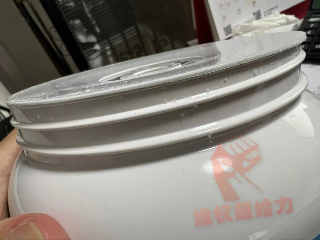 湯先生在山姆app上購(gòu)買一款進(jìn)口的美可卓脫脂牛奶粉已經(jīng)三四年了,平時(shí)都是給孩子喝。但最近再次購(gòu)買時(shí)他發(fā)現(xiàn),每罐奶粉瓶蓋旋轉(zhuǎn)邊緣都附著大量白色粉末狀物質(zhì)。為驗(yàn)證這些粉末到底是什么,特意做了測(cè)試,用手沾濕去觸碰,發(fā)現(xiàn)并不會(huì)融化。