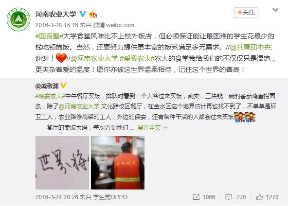 去年,河南農(nóng)業(yè)大學的平價食堂也曾爆紅網(wǎng)絡。
