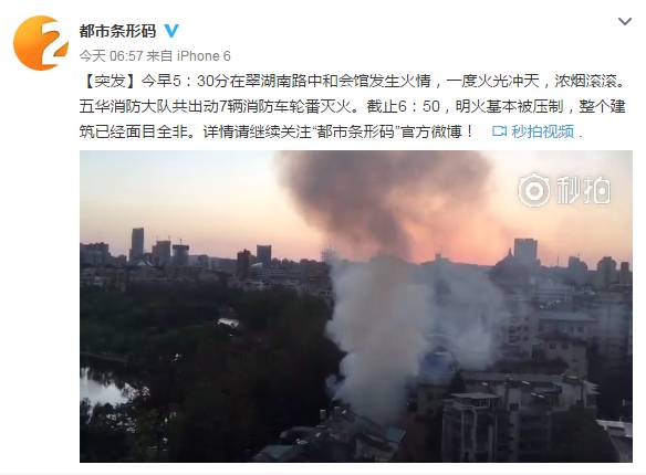 今天早上6:57,都市條形碼微博第一時間發(fā)布了翠湖南路中和會發(fā)生火災(zāi)的消息。很快,這條微博刷遍朋友圈,大家紛紛感嘆,這是我最愛去的酒吧,里面有多少青春和回憶,居然一把火就燒沒了。