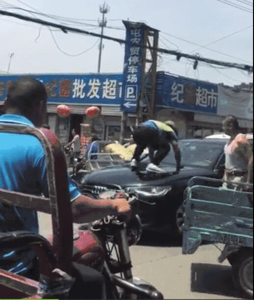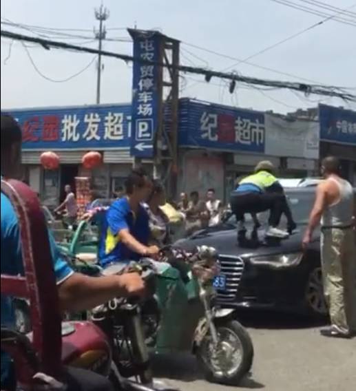 視頻中,一名穿制服的男子趴在一輛奧迪車的引擎蓋上,很快,奧迪車加速行駛,將男子頂著前行。知情人透露,事情發(fā)生在昨天下午一點(diǎn)多,引擎蓋上的男子是物流公司的一名保安,當(dāng)時(shí)他正在指揮交通,一名女司機(jī)不聽(tīng)勸阻,雙方隨之發(fā)生沖突。