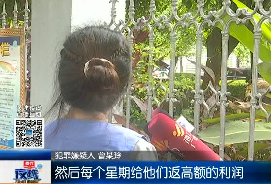 記者從警方了解到,犯罪嫌疑人曾某玲按照受害人不同的投資金額,一期按照不同的投資金額的返利也從百分之二到百分之十有所不同,據(jù)犯罪嫌疑人曾某玲跟受害者介紹,她投資的項目一星期會有三期,一個月就有十二期,犯罪嫌疑曾某玲所描述每個月高額的返點讓相信她的親朋好友們紛紛將錢投給了她。