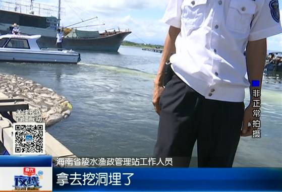 海南省陵水漁政管理站的工作人員告訴我們,在我們到達(dá)的當(dāng)天,他們已經(jīng)開始了處理死魚的工作,因為有很多魚排設(shè)置在遠(yuǎn)離岸邊的海面上,所以他們花費了很多時間將魚排逐個解體拉至岸邊處理,速度并不快,到當(dāng)天3點為止,已經(jīng)處理了所發(fā)現(xiàn)死魚的6成左右,他們還會加班加點,爭取在當(dāng)天將所有死魚處理完畢。