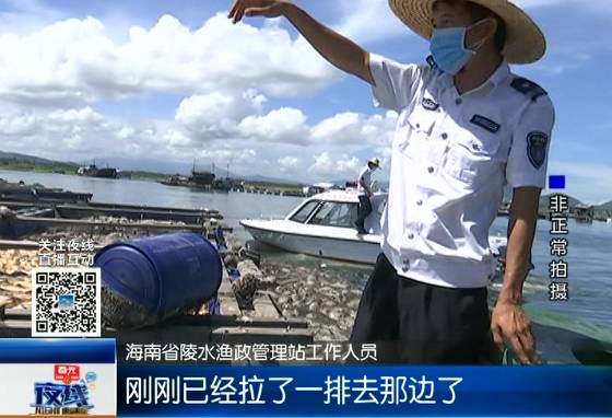 除了軍曹魚之外,該養(yǎng)殖區(qū)的其他魚類,也受到了影響,涉及到的損失不計其數(shù)。在查看的過程中,我們還不斷的發(fā)現(xiàn)仍然有新的死魚浮上水面。我們在現(xiàn)場看到,已經(jīng)有漁政的工作人員在幫助養(yǎng)殖戶對死亡的海魚進(jìn)行處理。