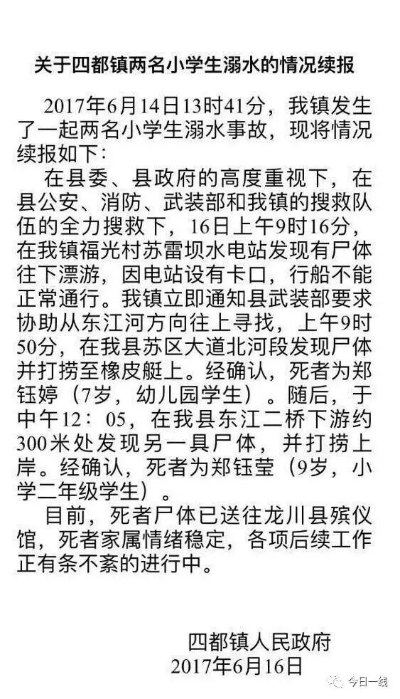據(jù)了解,意外墜河的兩名學(xué)生,分別是7歲的小婷及9歲的小瑩,兩人是親姐妹,都在河源龍川四都鎮(zhèn)讀小學(xué)。6月14日中午1點(diǎn)45分左右,姐妹倆在上學(xué)校途中,妹妹小婷由于腳上沾滿(mǎn)泥沙,便打算去一旁的新龍河河邊洗腳,結(jié)果不慎滑落河中。