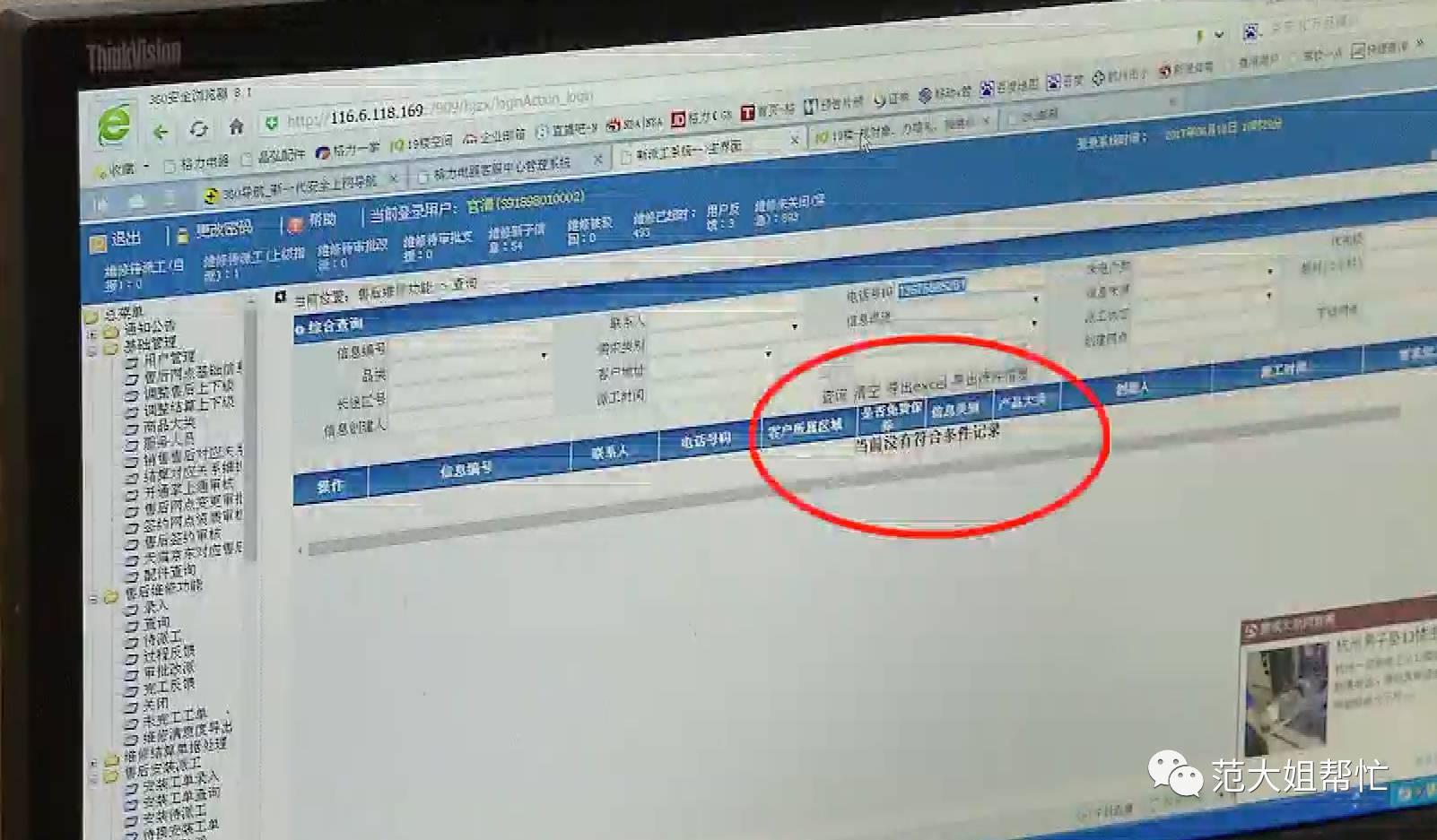 格力(浙江)客服管理中心售后組的組長查看了烏先生手機(jī)上的通話記錄,核實有通話后,他又在他們的系統(tǒng)中輸入了烏先生的電話,但是并沒有任何記錄。