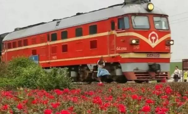 當(dāng)時(shí)女孩靠近鐵路自拍