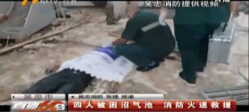 6月18號(hào)下午,在吳忠市利通區(qū)五里坡樂(lè)匯牧場(chǎng),有4人落入沼氣池內(nèi)發(fā)生沼氣中毒,生命垂危。接到報(bào)警后,吳忠消防特勤中隊(duì)官兵迅速趕赴現(xiàn)場(chǎng)營(yíng)救。
