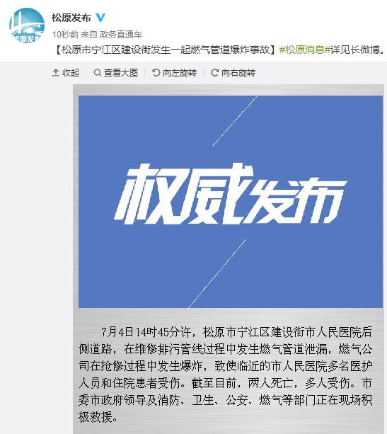7月4日17時50分左右,松原發(fā)布官微發(fā)布了相關(guān)消息。