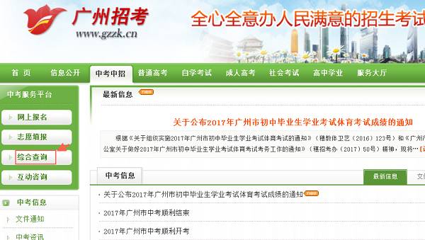廣州市2017年初中畢業(yè)生學(xué)業(yè)考試(以下簡稱“學(xué)業(yè)考試”)成績以電子版成績單的方式統(tǒng)一公布,考生可登錄廣州市高中階段學(xué)校招考服務(wù)平臺(tái)(網(wǎng)址http://zhongkao.gzzk.cn)進(jìn)入個(gè)人信箱查收電子版成績單。