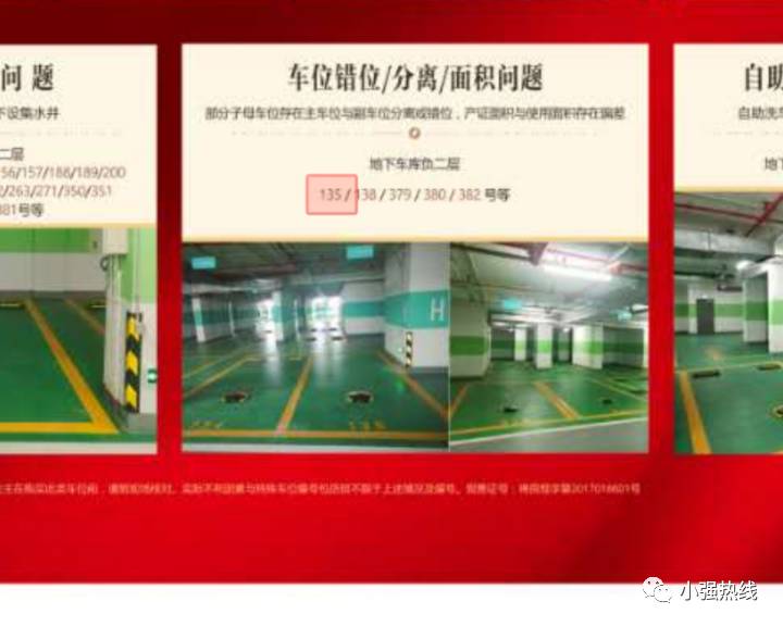 隨后,記者亮明身份,找到開(kāi)發(fā)商,開(kāi)發(fā)商表示,當(dāng)初車(chē)位開(kāi)賣(mài)的時(shí)候已經(jīng)貼出告示,告知一些特殊車(chē)位的實(shí)際情況。135號(hào)車(chē)位就屬于“車(chē)位錯(cuò)位、分離,產(chǎn)證面積與使用面積存在偏差”的情況。