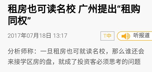 7月17日,廣州頒布“租購?fù)瑱?quán)”新政引起了全國關(guān)注,提出 " 賦予符合條件的承租人子女享有就近入學(xué)等公共服務(wù)權(quán)益,保障租購?fù)瑱?quán) "。這意味著,租房就有可能上名校。