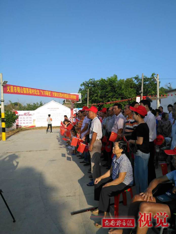 9月18日早上8時,“國旗村”文昌市錦山鎮(zhèn)厚祿村舉行紀念“9.18事變”升旗儀式和進行村民愛國主義教育。