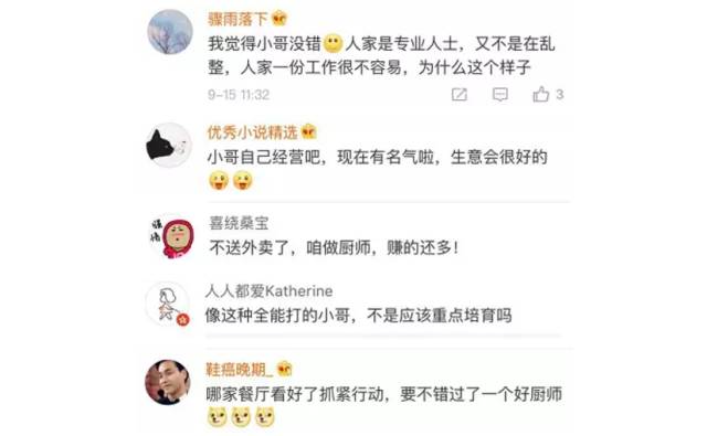 對(duì)此,不少網(wǎng)友打趣道:你以為你們吃的外賣都是大廚炒出來的嗎?其實(shí)是外賣小哥自己炒的!