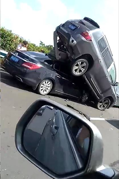盡管事故現(xiàn)場出現(xiàn)了“疊羅漢”的奇葩情況,但所幸事故并未造成人員傷亡。