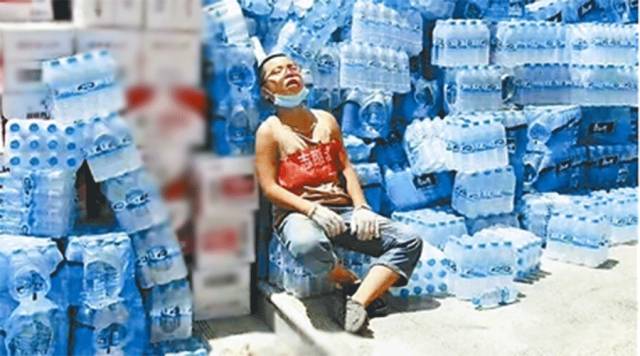 7月26日,陜西省榆林市綏德縣發(fā)生特大洪水災(zāi)害。12歲的胡智博是抗洪“最小志愿者” ,一天背70多袋面,累癱在礦泉水“山”旁。