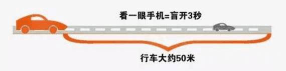 看一眼手機最少要3秒,假如以60km/h的時速開車,3秒鐘可開出50米,而這50米完全是在盲開,非常危險。