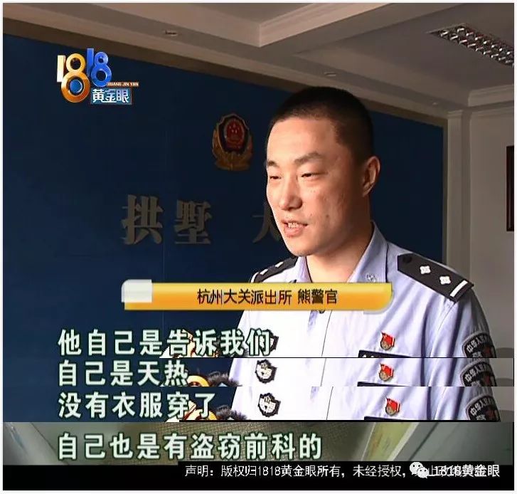 杭州大關(guān)派出所 熊警官:“他自己是告訴我們,自己是天熱,沒有衣服穿了,自己就產(chǎn)生了這么個想法,自己也是有盜竊前科的。”