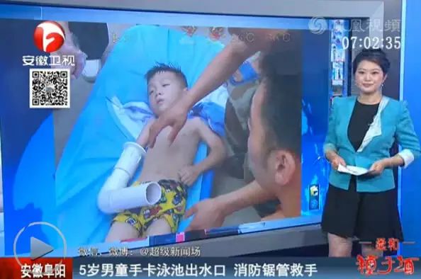 2014年7月,安徽一5歲男童的手被泳池出水口卡住,幸而消防人員及時(shí)施救,將出水口管道及時(shí)鋸開(kāi)。