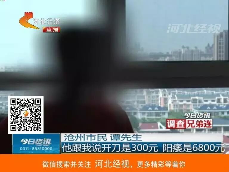 姓周的說300元只是開刀費(fèi),要治療陽痿早泄還需要額外收費(fèi)。你說刀都已經(jīng)開了,這額外收費(fèi)咬著牙也得出啊,一問,6800元,真是讓譚先生無奈。