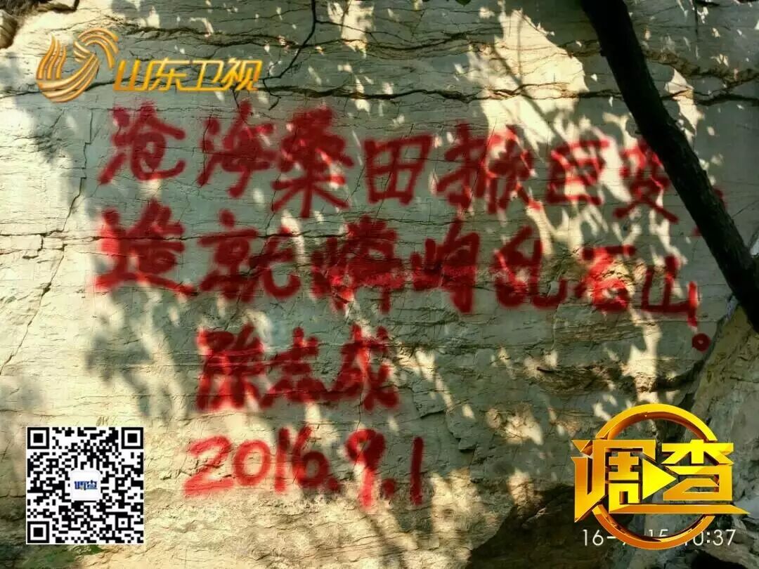 事發(fā)后,景區(qū)懸賞通緝“陳志成”。沒想到,帖子發(fā)出后不久,陳志成主動現(xiàn)身并誠懇道歉。山東衛(wèi)視《調(diào)查》記者在景區(qū)內(nèi)見到了涂鴉者“陳志成”,對于涂鴉的原因,他的解釋竟然是因為……更多內(nèi)容請鎖定山東衛(wèi)視21:40《調(diào)查》。