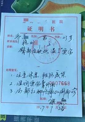 小伙忍著疼痛回到社區(qū)醫(yī)院看醫(yī)生,竟然真的被燙傷了!醫(yī)生診斷為:臀部皮膚低溫I度燙傷。處理意見為:1、注意休息,預防感染;2、濕潤燙傷膏外用;3、局部紅腫疼痛加劇即診。