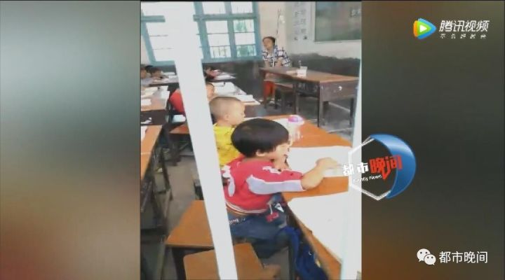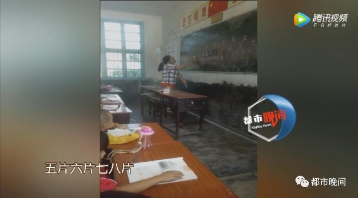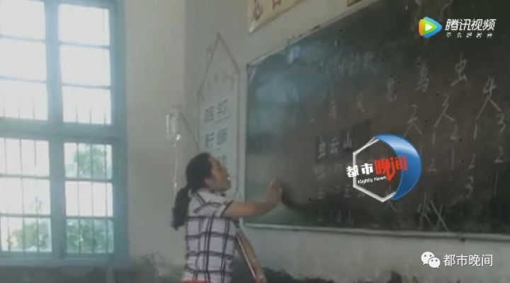 視頻中,鄭石華老師一邊撐著吊瓶,一邊給孩子們上課。這一幕,恰好被前來學(xué)?赐⒆拥募议L拍攝了下來。