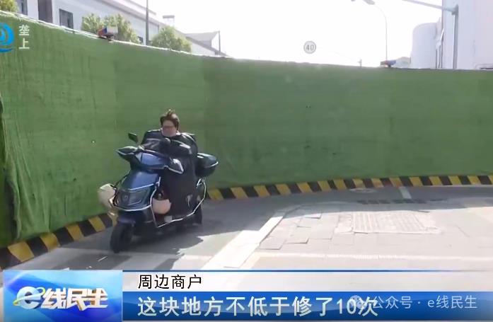 這個地方也不大,修了不低于10次了,這是10月頭才圍起來的。路就蠻堵,經常性的有人碰撞,有人摔跤,嚴重影響交通,影響市民的出行。