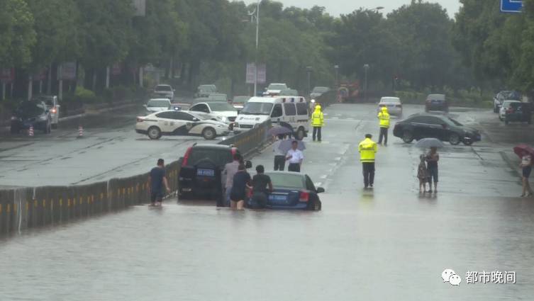 一米多深的水,讓大型的貨車都拋了錨,路人就更加沒法通行了,還好,這個(gè)路段的車輛不多、交通比較通暢,選擇繞行也費(fèi)不了多少功夫,而在長沙的車站北路與晚報(bào)大廈交叉口,這里的積水可讓路人吃了不少苦頭。