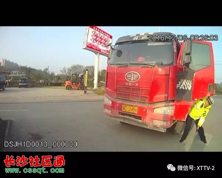 當(dāng)天上午8點20分左右,交警指揮中心向雨湖交警大隊七中隊下達(dá)指令,要求路面民警攔截一臺紅色貨車。接到指令后,路面巡邏交警在二環(huán)線石碼頭路口至桃園路口路段,民警發(fā)現(xiàn)了這臺貨車。