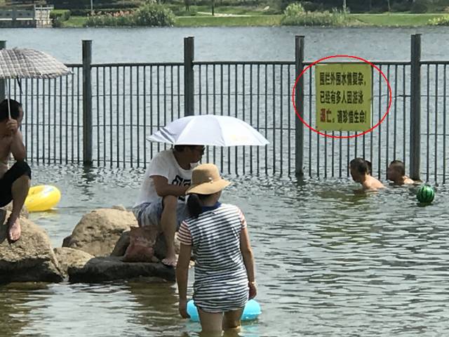 日湖深水區(qū)是明令禁止游泳的!警示牌還立在旁邊↓